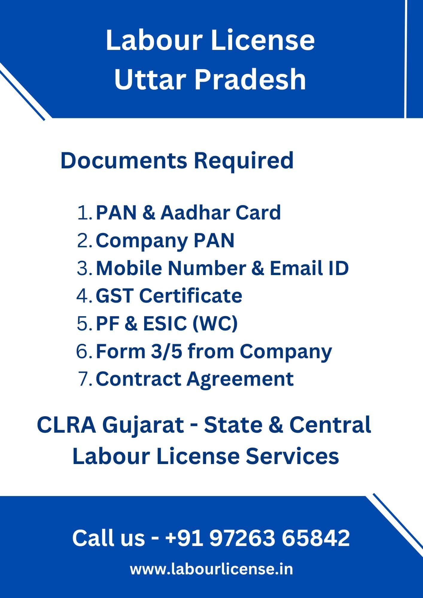 - Our professional fee for obtaining a Uttar Pradesh State Labour License is Rs. 7000/-